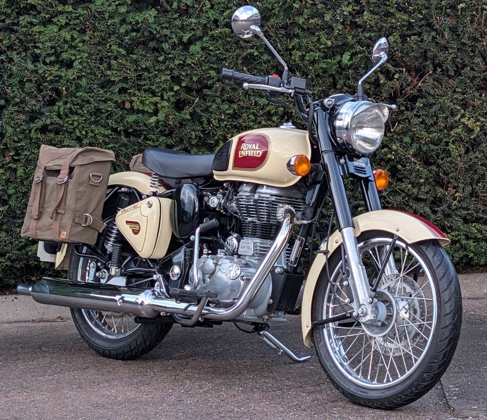 Royal Enfield Bullet Classic, 2016, Just 400 miles, recently serviced and in immaculate showroom condition as you'd expect. Panniers complete the vintage style